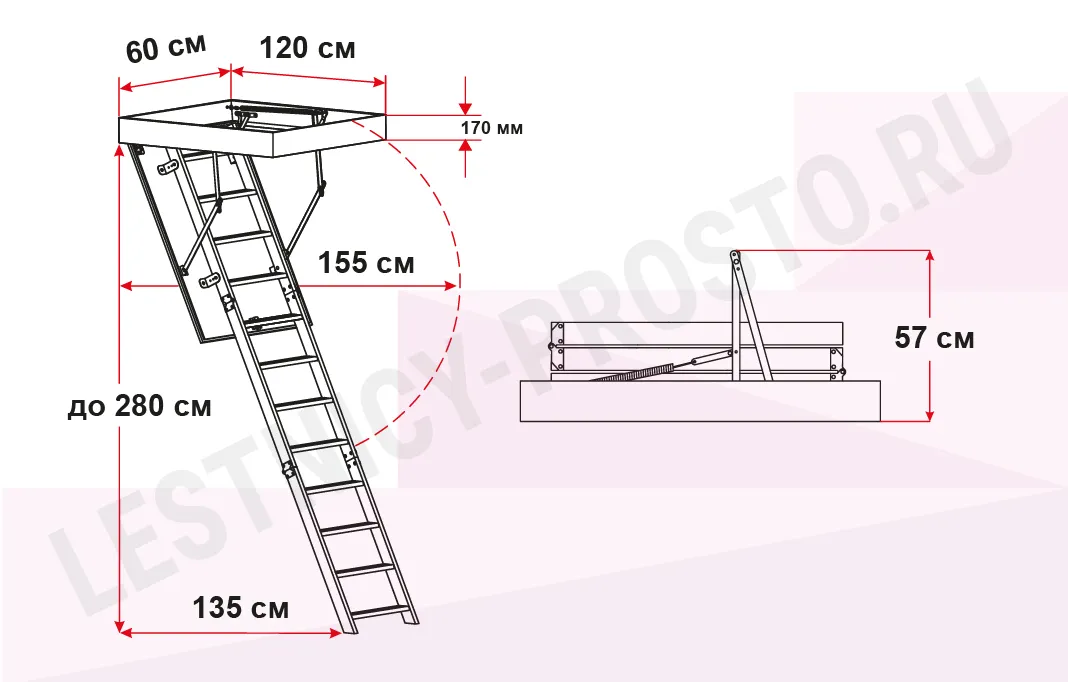 Чердачная лестница OMAN Extra 60×120 см, h-280 см