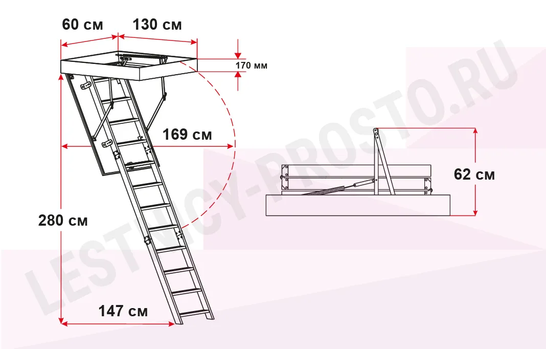 Чердачная лестница с люком OMAN POLAR 60х130 см, h-280 см