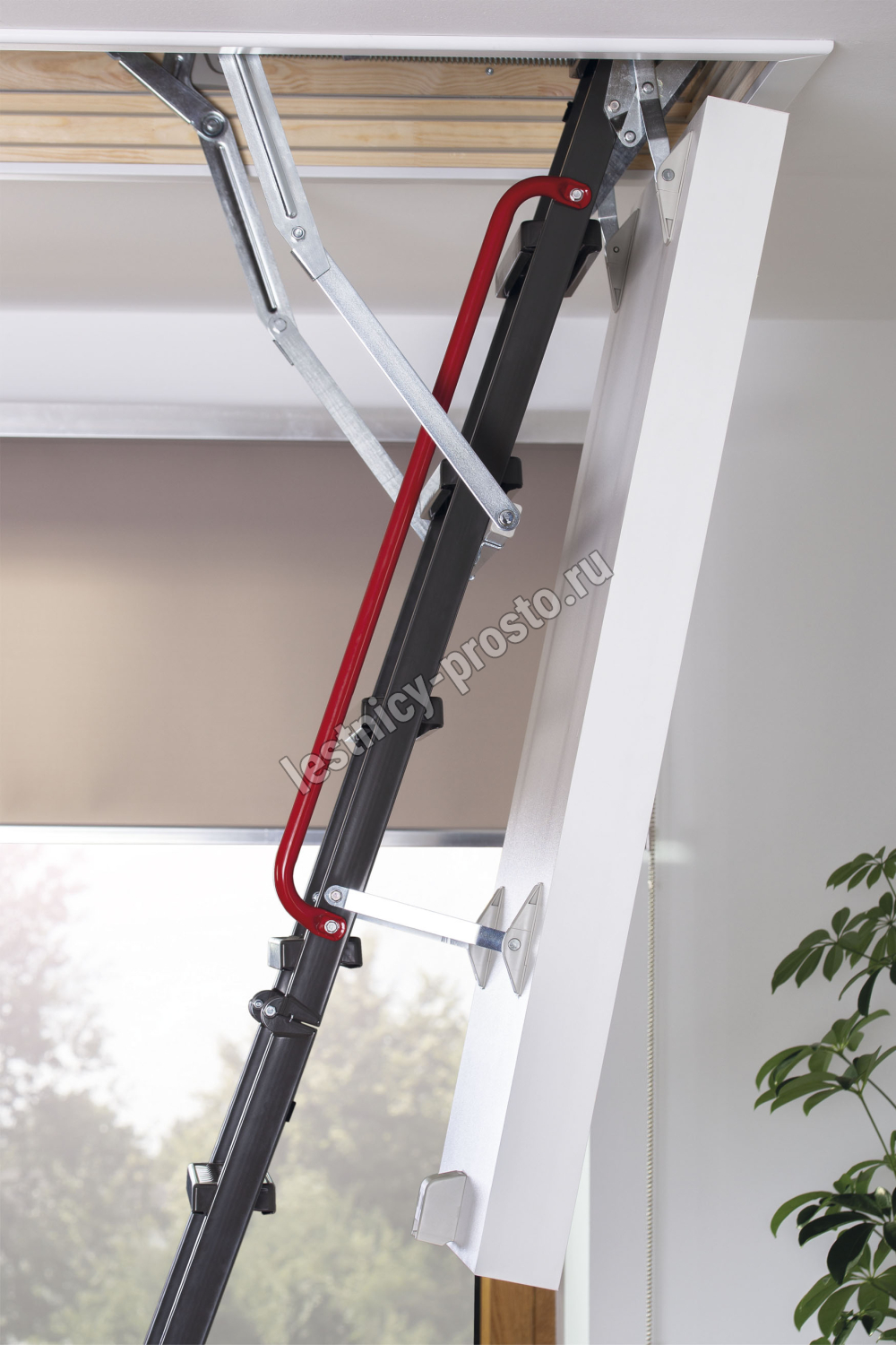 Лестница обладает повышенной теплоизоляцией и низкими показателями воздухопроницаемости крышки. Облегченная крышка люка изготовлена из пенополистирола без применения дополнительных деревянных элементов. Наконечники имеют возможность регулировки, что позволяет подогнать длину лестницы по высоте помещения в случае излишнего подрезания лестницы или изменения толщины пола.