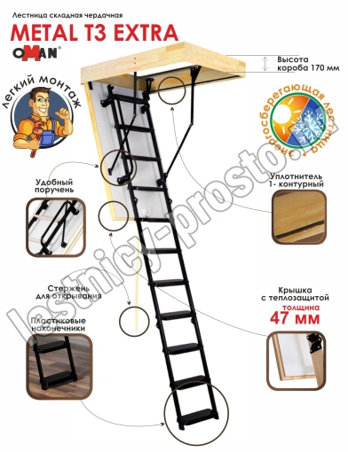 Лестница OMAN Metal T3 EXTRA 55×130 см, h-280 см