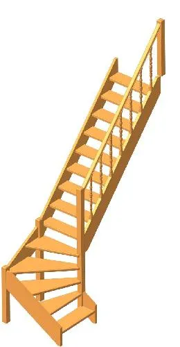 Деревянная межэтажная лестница ЛЕС-01 2525-2720 проем 1640-900, Бук