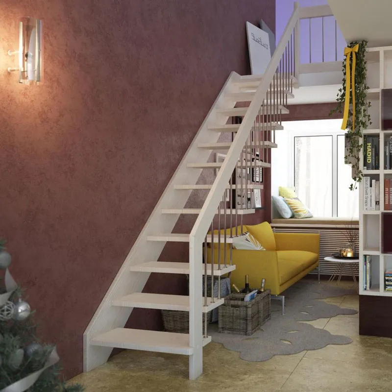 Базовый комплект включает в себя деревянные элементы лестницы без какого-либо покрытия. Лестница поставляется в разобранном виде.