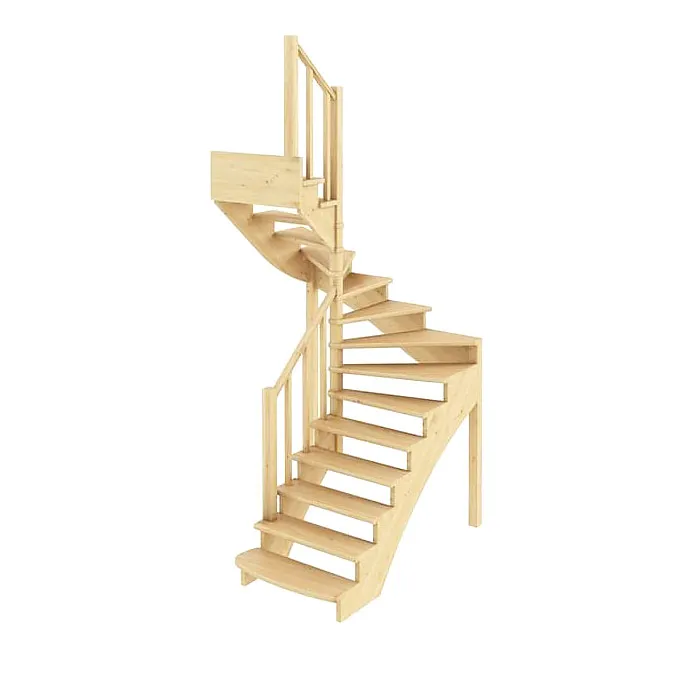 Базовый комплект включает в себя деревянные элементы лестницы и ограждения без какого-либо покрытия. Стильная сверхмалогабаритная лесенка, она выручит в таких помещениях, где установка других лестниц проблематична из-за нехватки пространства.