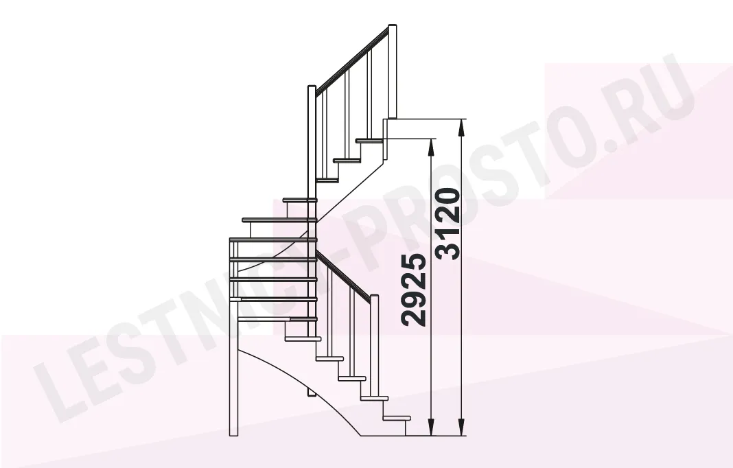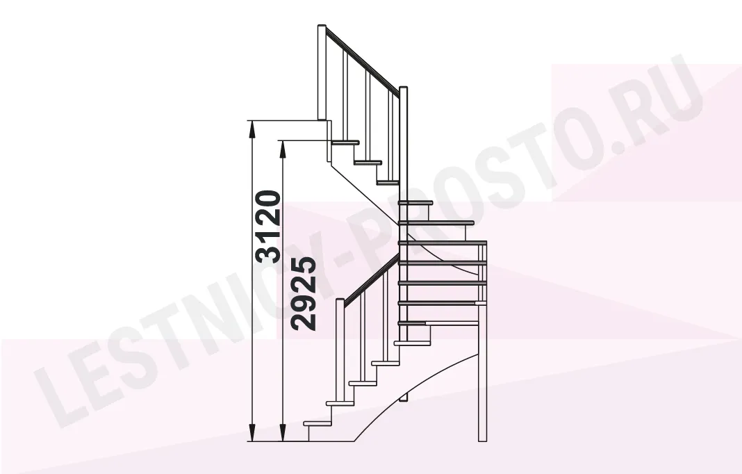 Высота лестницы 2925 - 3120 мм