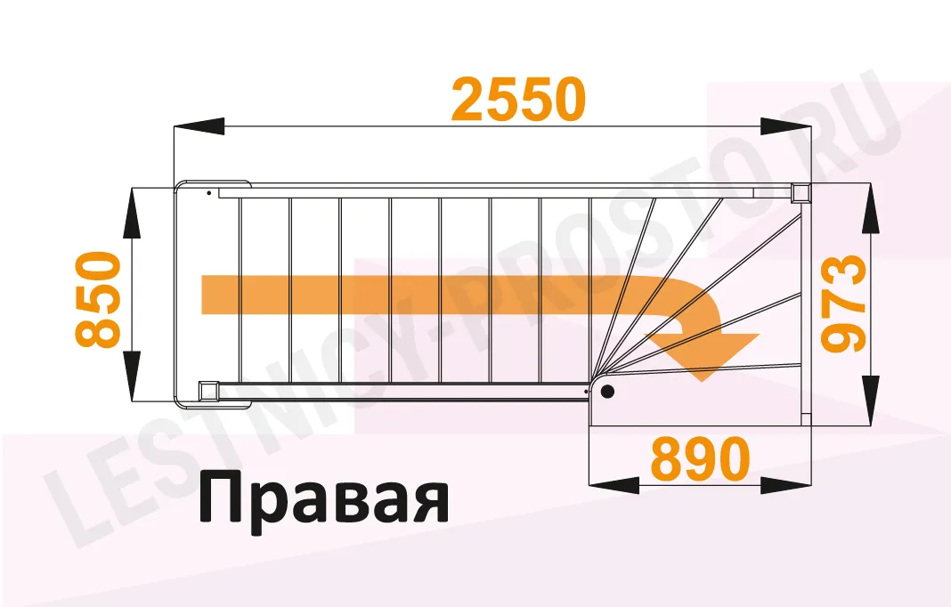 Схема лестницы ЛС-215Мм с поворотом направо