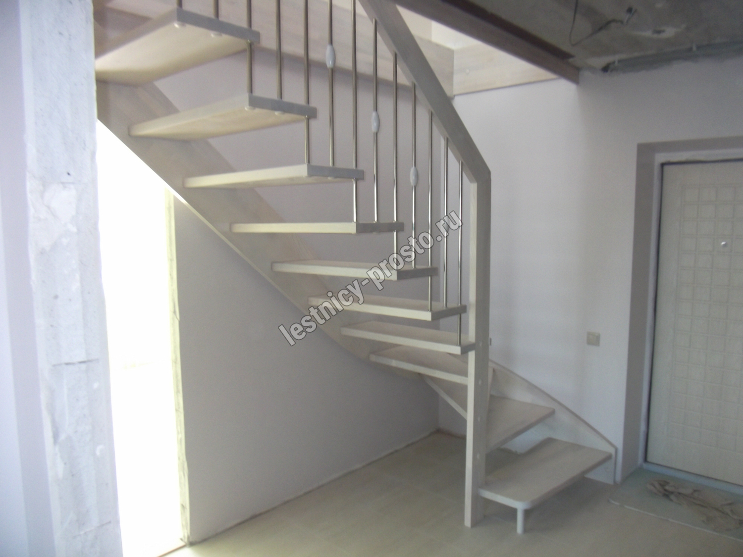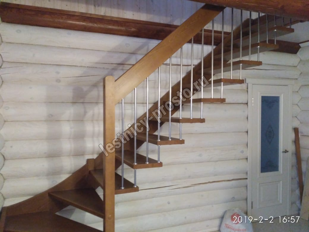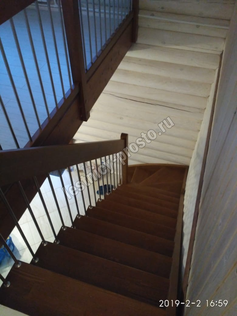 возможна комбинированная лестница: из сосны (ступени бук, ясень, дуб);