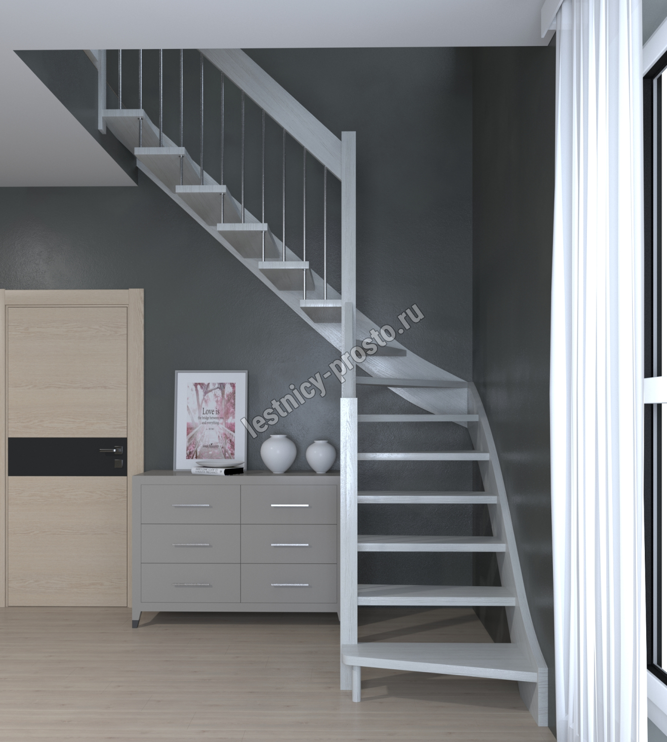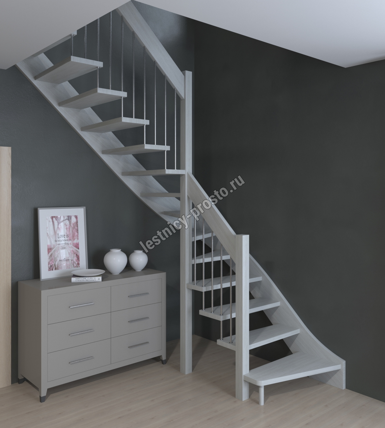 Лестница Prosto Console г-образная забежная бук, h260 см