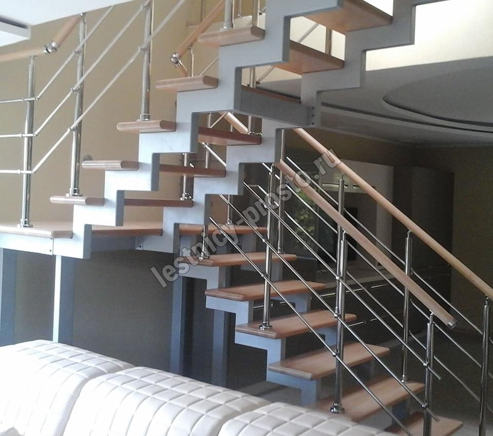 Основой лестницы Prosto Double 50×100 служит усиленный двойной металлический каркас из профильной трубы 50×100 мм (включая 4 опоры на пол под поворотом), который обеспечивает надёжную прочность конструкции и современный актуальный дизайн. Данный вариант лестницы предполагает поворот на 180° через забежные ступени. Под заказ возможно изготовление каркаса под поворотную площадку.
