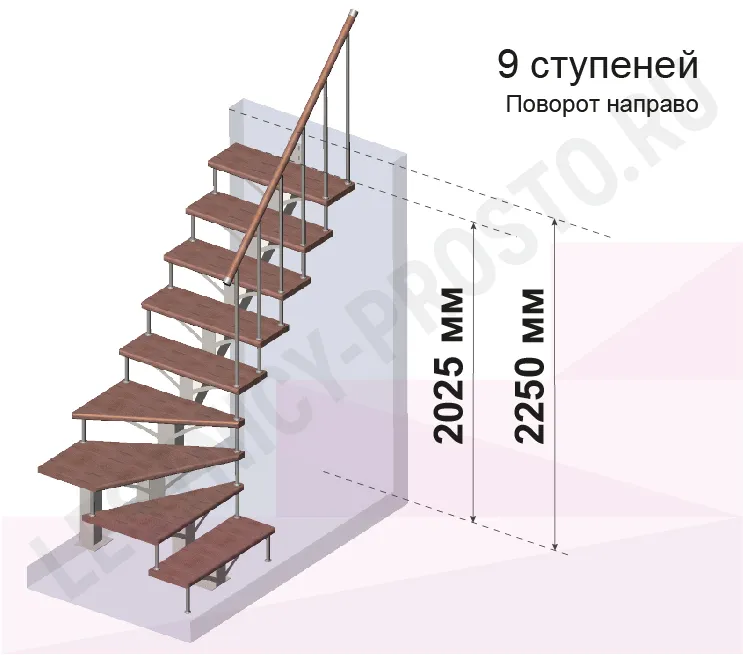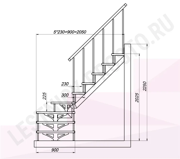 Высота лестницы 2025 - 2250 мм