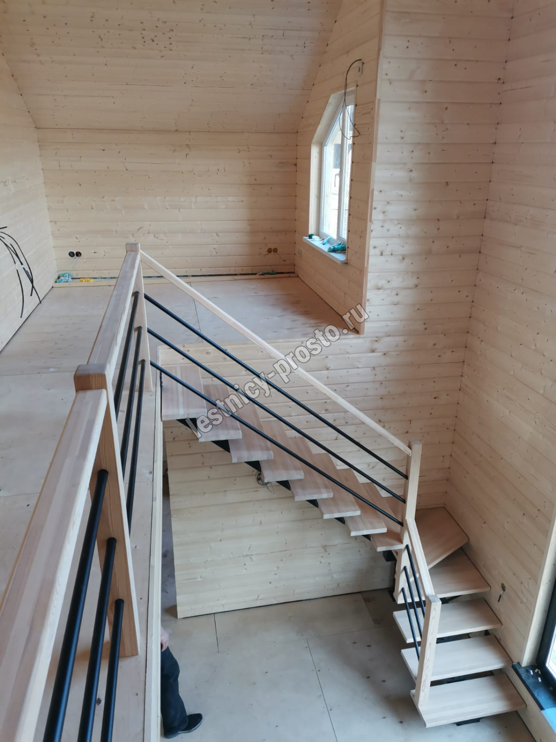 Лестница PROSTO MONO STEP TRINITY г-образная забежная, ступени берёза