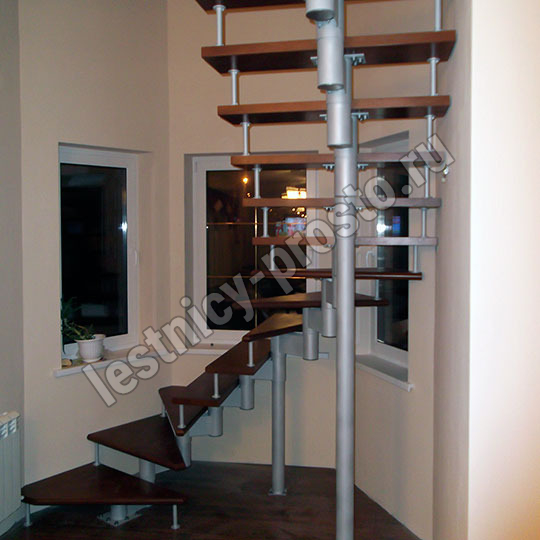 Каркас лестницы представляет собой набор модулей, которые комплектуются уже готовыми к монтажу.