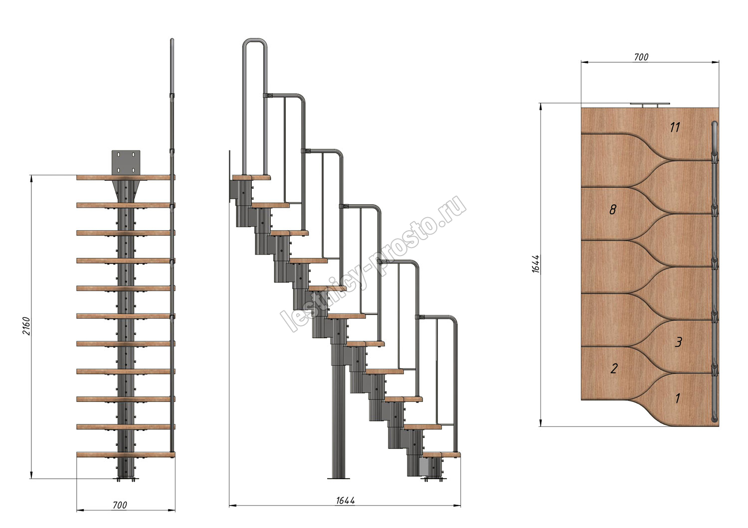 Лестница Prosto Urban Black гусиный шаг 700 мм, h198-288 см (11 ступеней), бук