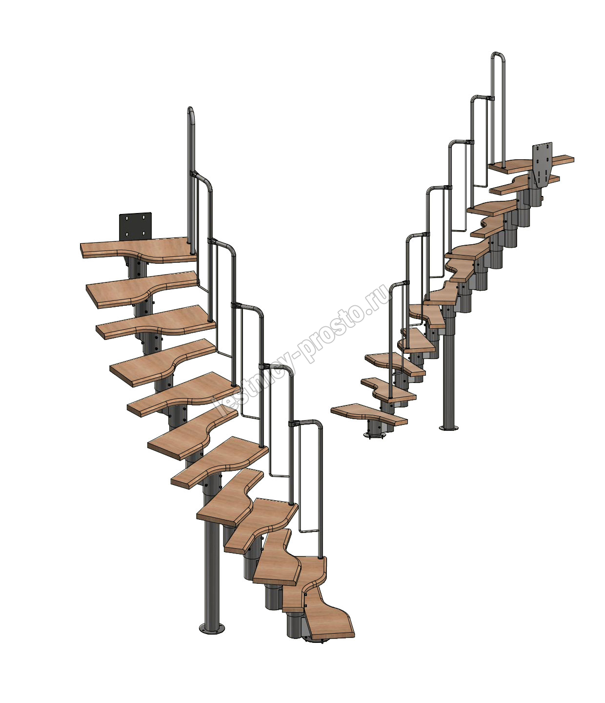 Лестница Prosto Urban Black гусиный шаг 700 мм, h216-312 см (12 ступеней), дуб