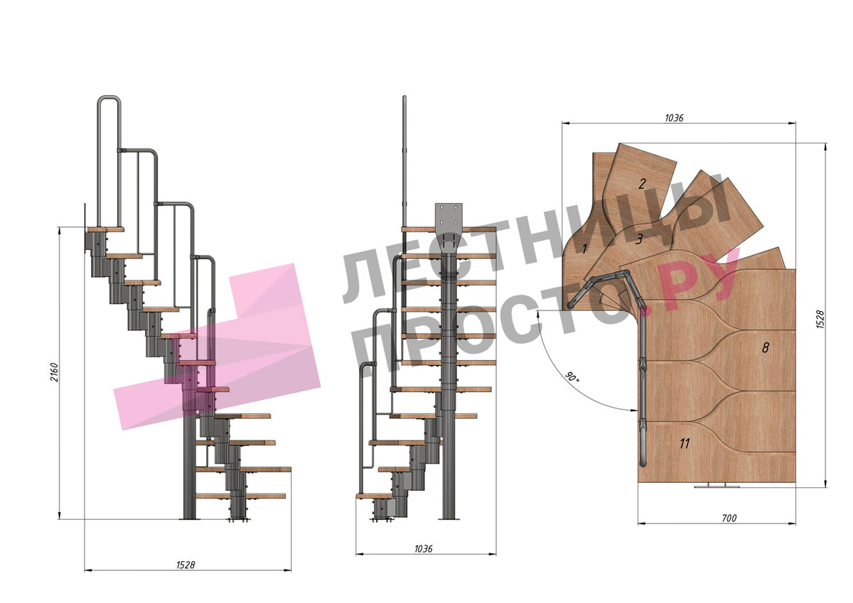 Высота лестницы 1980 - 2880 (11 ступеней) мм