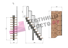 Лестница Prosto Urban Black гусиный шаг 600 мм, h180-264 см (10 ступеней), бук