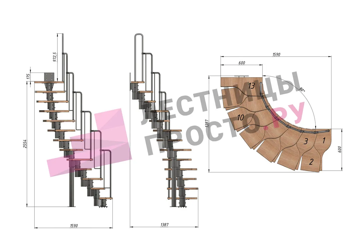 Лестница Prosto Urban Black гусиный шаг 600 мм/ Ступени из берёзы мультиплекс