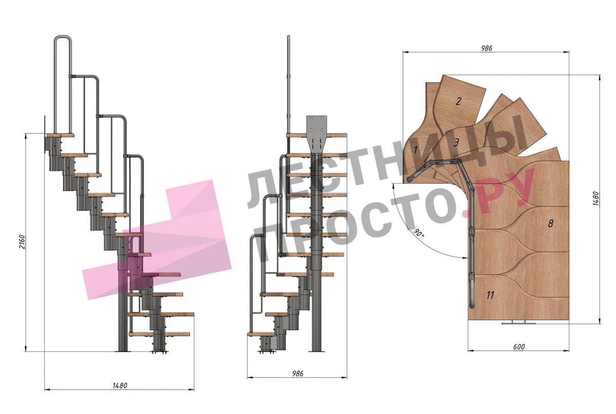 - Регулируемый по высоте в пределах 180-240 мм модуль. Большой диаметр и толщина металла деталей обеспечивают жесткость и прочность конструкции. Регулировка каждого модуля по высоте позволяет легко приспособить лестницу под ваше помещение.