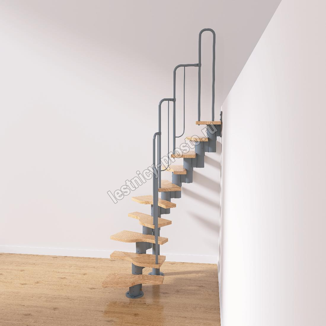 Лестница Prosto Urban Grey г-образная гусиный шаг 600 мм, h180-264 см (10 ступеней)