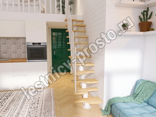 Лестница Prosto Urban White гусиный шаг 600 мм, h216-312 см (12 ступеней), дуб