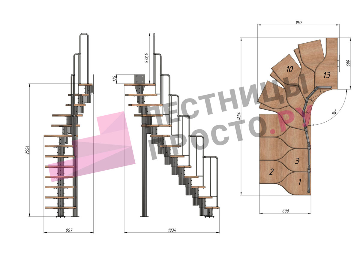 -Возможность установить лестницу как прямую, так и с поворотом внизу или вверху; при этом нужно понимать, что поворот менее удобен, чем прямой участок лестницы.