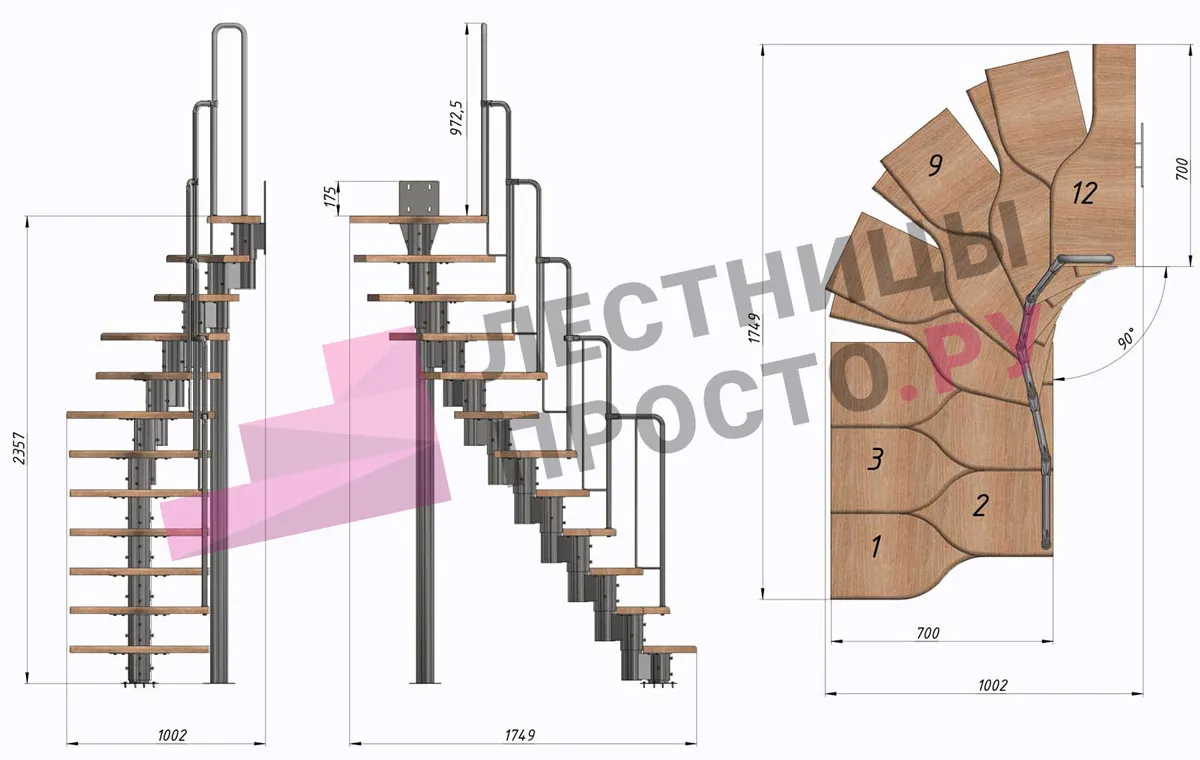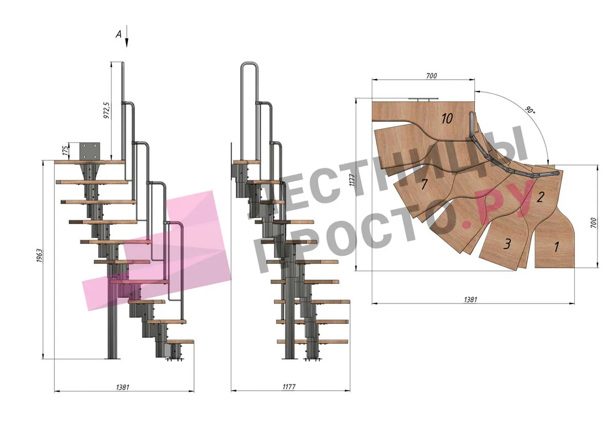 Высота лестницы 1980 - 3600 мм