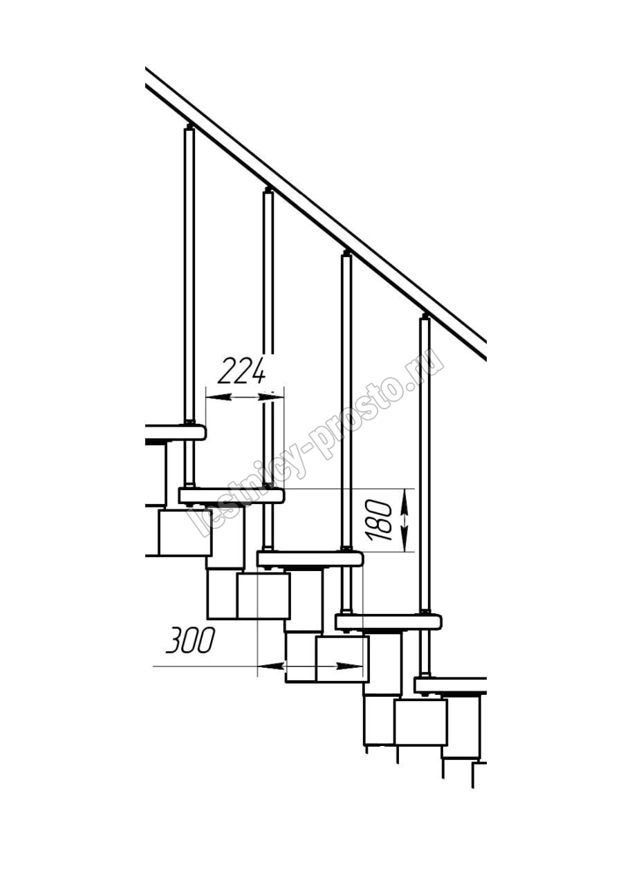Модульная лестница Фаворит 180 3060-3230, Черный, Сосна, Крашеная, Без Ступений