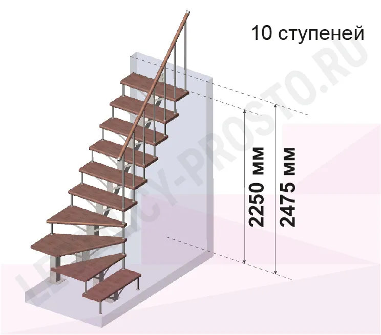 | Лестница PROSTO MONO Г-образная h270 см, ступени хвоя |