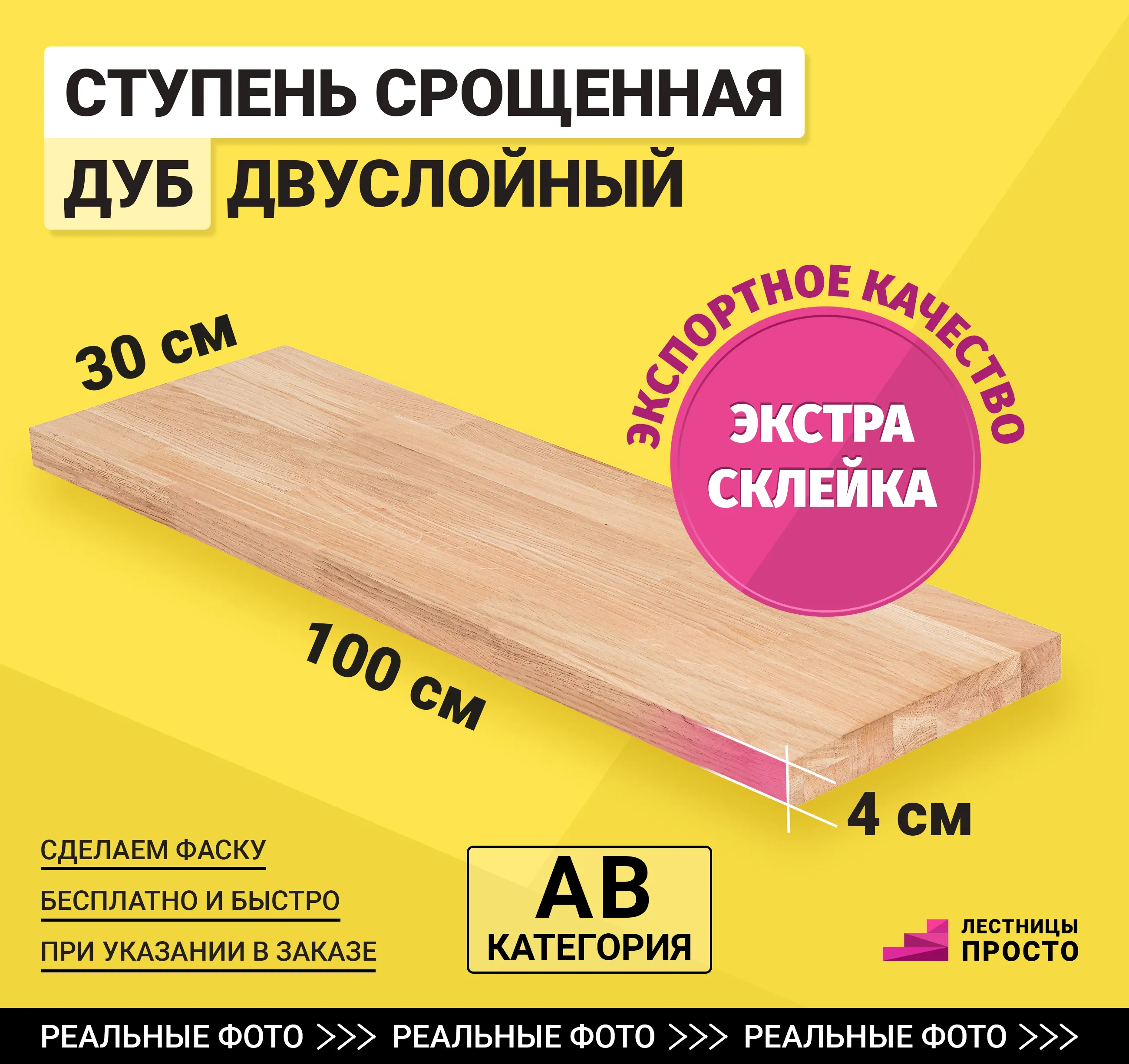 Данная ступень изготовлена из срощенного дуба категории А/В.