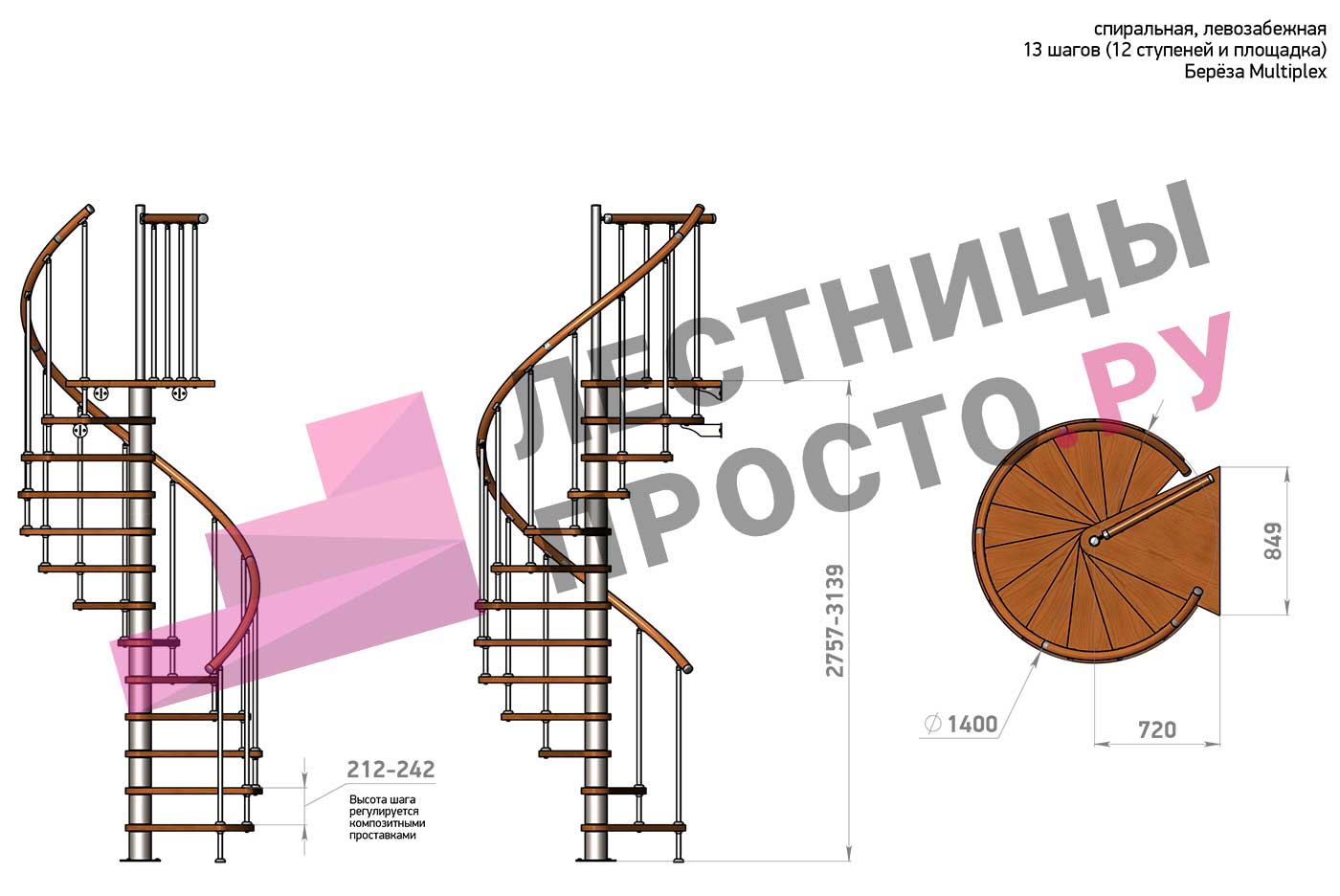 Высота лестницы 2757 - 3139 (12 ступеней) мм