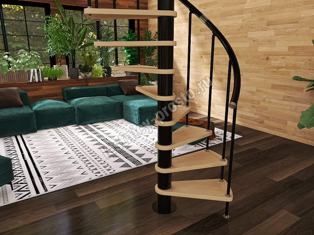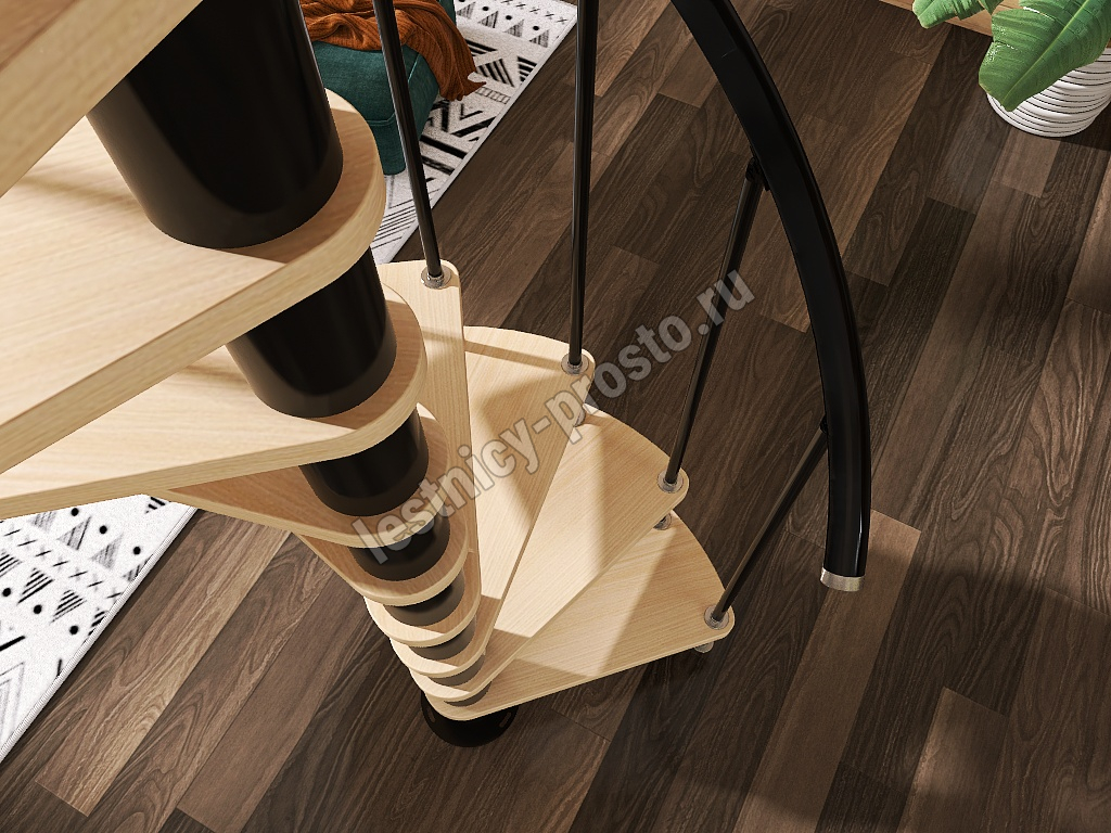 Винтовая лестница Prosto Spiral Black D140см, h325.7-369.8 см, бук
