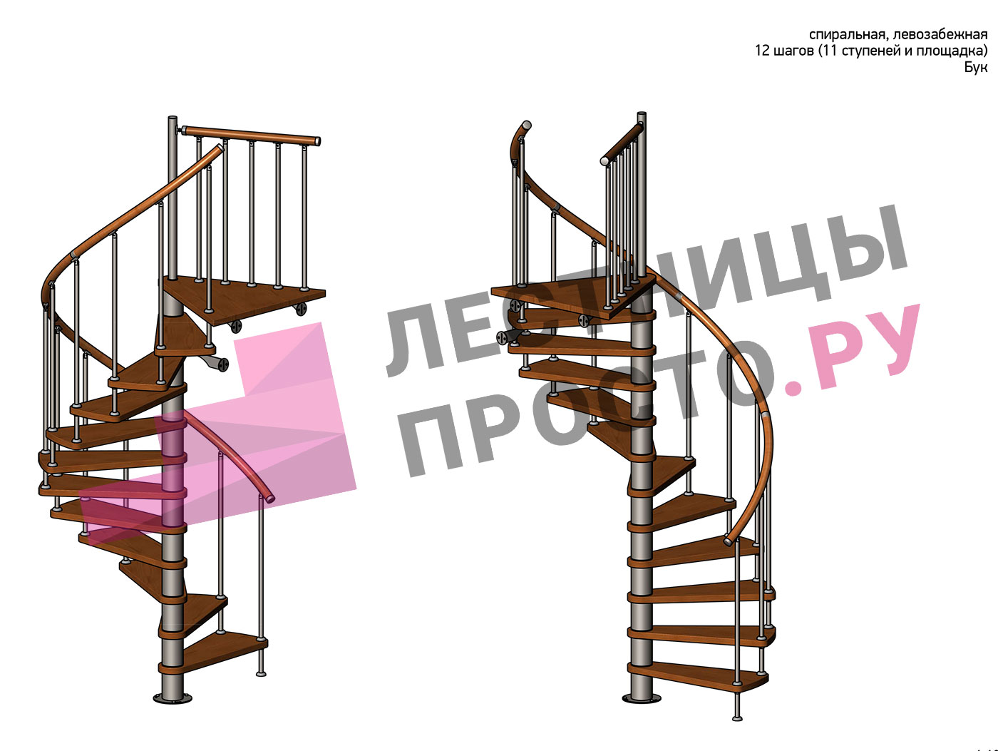Решение о направлении поворота принимается при сборке лестницы - универсальная конструкция позволяет собрать правозабежную и левозабежную лестницы. Высота ступеней регулируется с шагом 3 мм. в пределах 217-247 мм., благодаря чему, лестница прекрасно подгоняется под необходимую высоту.