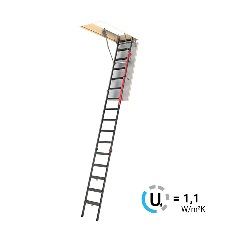 Экономит пространство. Высота ступеней регулируется с шагом 3 мм. в пределах 217-247 мм., благодаря чему, лестница прекрасно подгоняется под необходимую высоту.