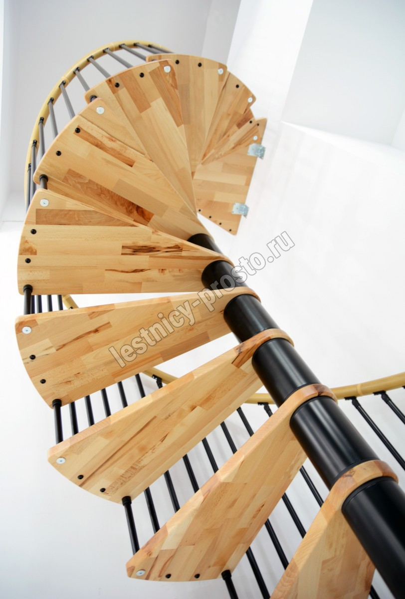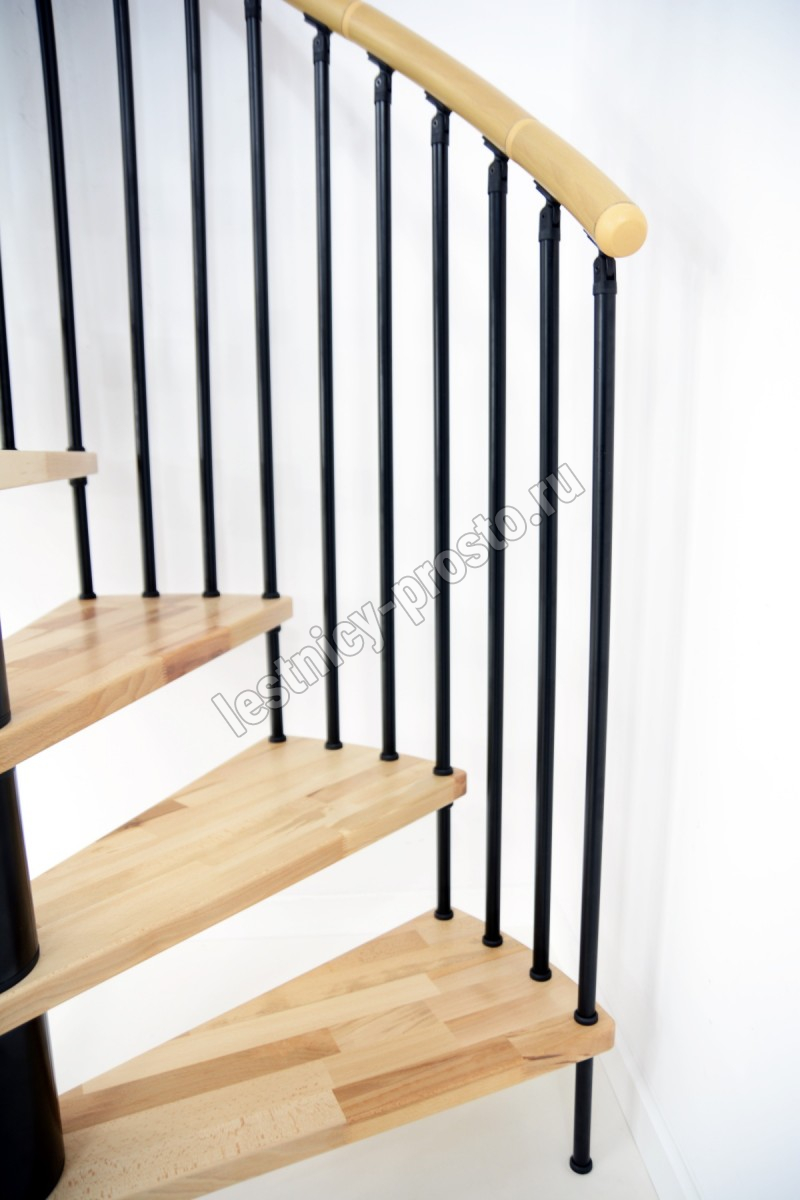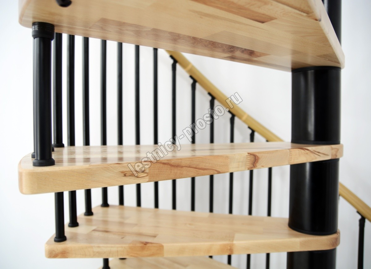 Поручень изготовлен из массива дуба в тон ступеням. Поручень и ступени лестницы покрыты износостойким защитным лаком.